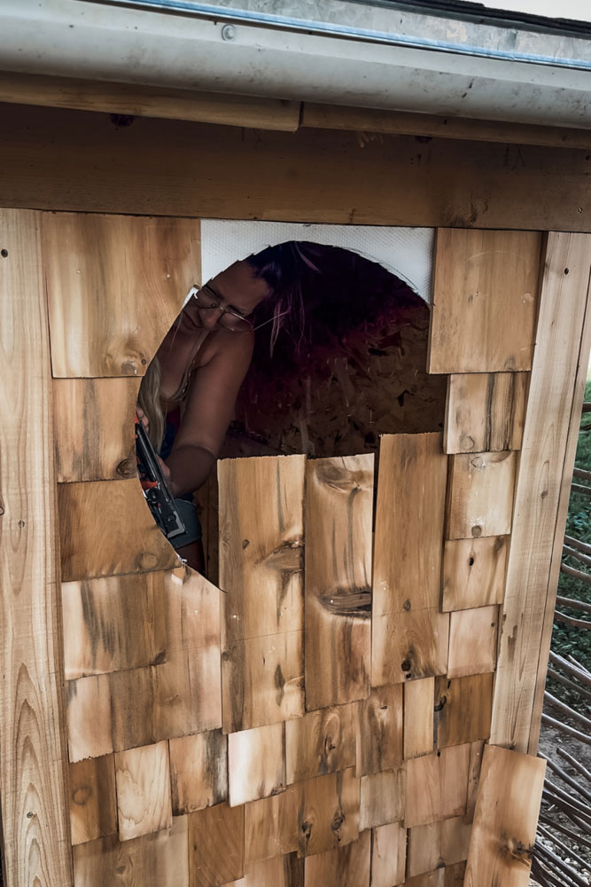 Some folks measure their summers by trips taken or miles logged. I’ll remember this one by the smell of sawdust and cedar, the sound of the nail gun echoing in the field, and the laughter when our kids peeked through the round window like it was their own Hobbiton or layed up on the roof to watch the stars fall during my nighttime work sessions.