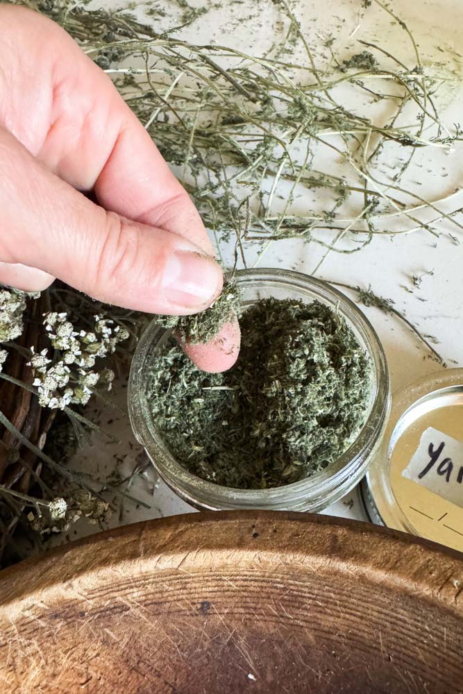 • Ground up and keep on hand: Keep yarrow on hand by simply grinding it up and sealing it into a jar — because when there’s an injury on an animal or us, it’s so nice to have on hand!